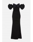 Elisabetta Franchi created a fully-fledged dress for the red carpet. Long cut, a bow on the bust and puffy sleeves combined with the slim fit it creates a sensual and feminine dress. The perfect outfit for your unique occasion.
