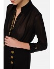 An easy-to-wear bodysuit-style blouse to enrich your outfit. A crossover neckline and the precious embroidery with a quote from Elisabetta Franchi make it both fun and chic.