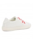 Philipp Plein a inclus des baskets blanches en cuir souple et mat. La demi-paire sur le cou-de-pied est décorée de différentes impressions : l'une avec un crâne rouge reconnaissable et l'autre avec le logo de la marque en noir. Ces chaussures s'intégreront harmonieusement dans un look décontracté avec un jean, un t-shirt et une veste en cuir.